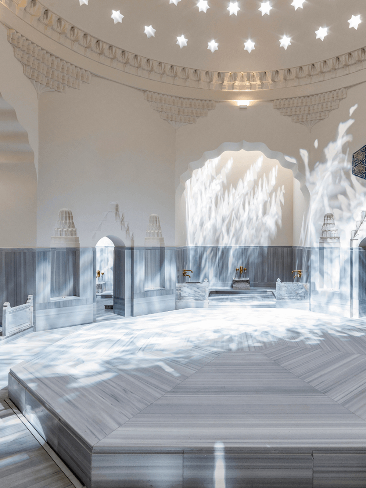 Binlerce yıllık bir geleneğin modern yorumunu sunan Türk Hamamımızda, bedeninizi ve ruhunuzu arındırmaya davetlisiniz. Otelimizin huzurlu atmosferine eşlik eden hamamımız, misafirlerimize benzersiz bir dinlenme ve yenilenme deneyimi sunuyor.